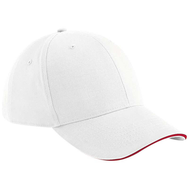 cotton, for added design each cap has a contrasting colour sandwich peak and finished with a