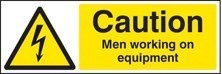 Caution men working on equipment sign