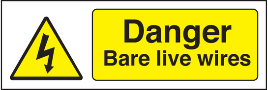 Danger bare live wires sign
