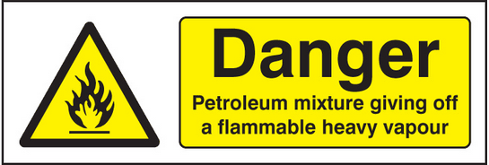 Danger petroleum mixture giving off flammable vapour sign