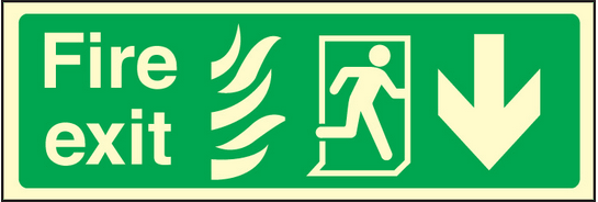 Fire exit arrow down HTM sign