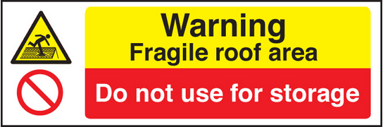 If you dont need a Fragile roof area do not use for a storage sign click here for our other safety signs.Click here to go to the full logo information page
