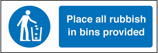If you dont need a Place all rubbish in bins provided sign click here for our other safety signs.Click here to go to the full logo information page