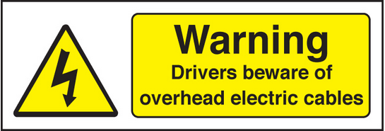 If you dont need a Warning drivers beware overhead cables sign click here for our other safety signs.Click here to go to the full logo information page