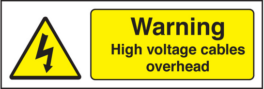 Warning high voltage cables overhead sign
